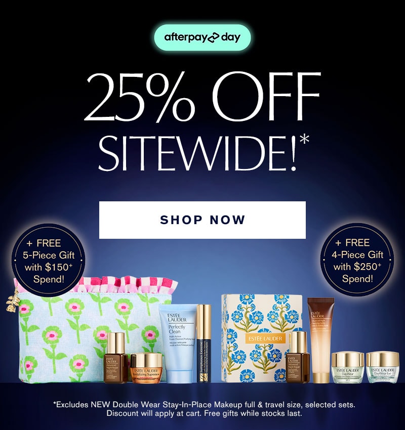 *Free Beauty Sponge: Free beauty sponge gift will automatically add to cart with a valid purchase of the NEW Double Wear Stay-In-Place foundation only. Offers not available in conjunction with other selected offers and selected E-List loyalty benefits. Quantities are limited and while stocks last. Gifts may be substituted without notice. Offer valid to Australian residents at http://EsteeLauder.com.au only. Applicable purchase amount does not include shipping and handling. Offer cannot be applied to previously placed orders. Offer is not applicable to pending purchases. Offer applies to authorised purchases only. Only authorised orders will be processed and shipped. Please note; we reserve the right to cancel any order due to unauthorised, altered, or ineligible use of offers and to modify or cancel promotions due to system error or unforeseen problems.